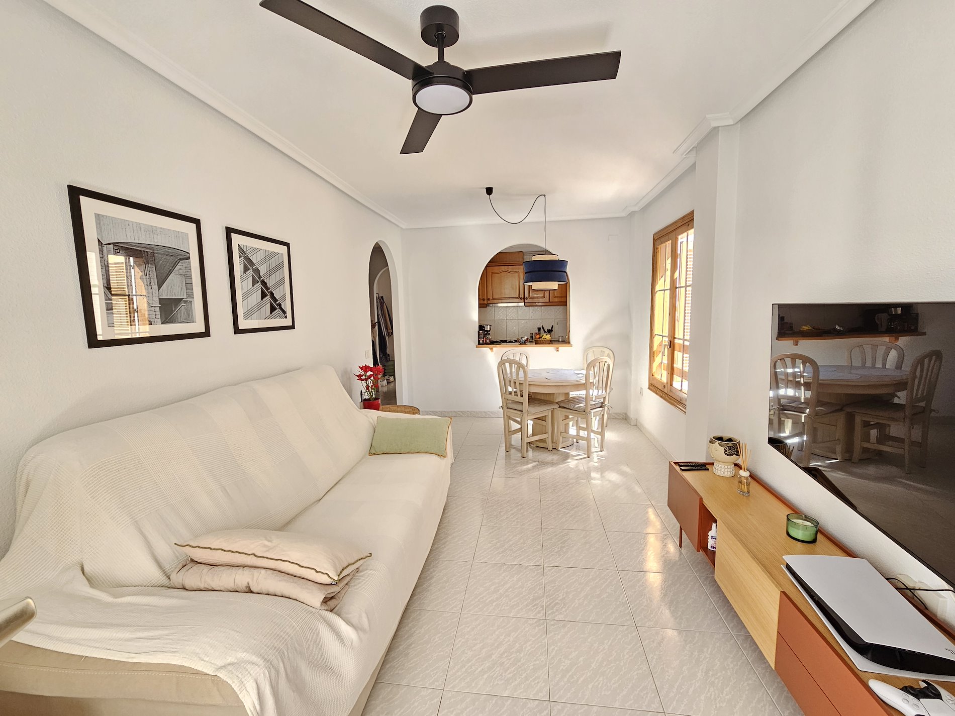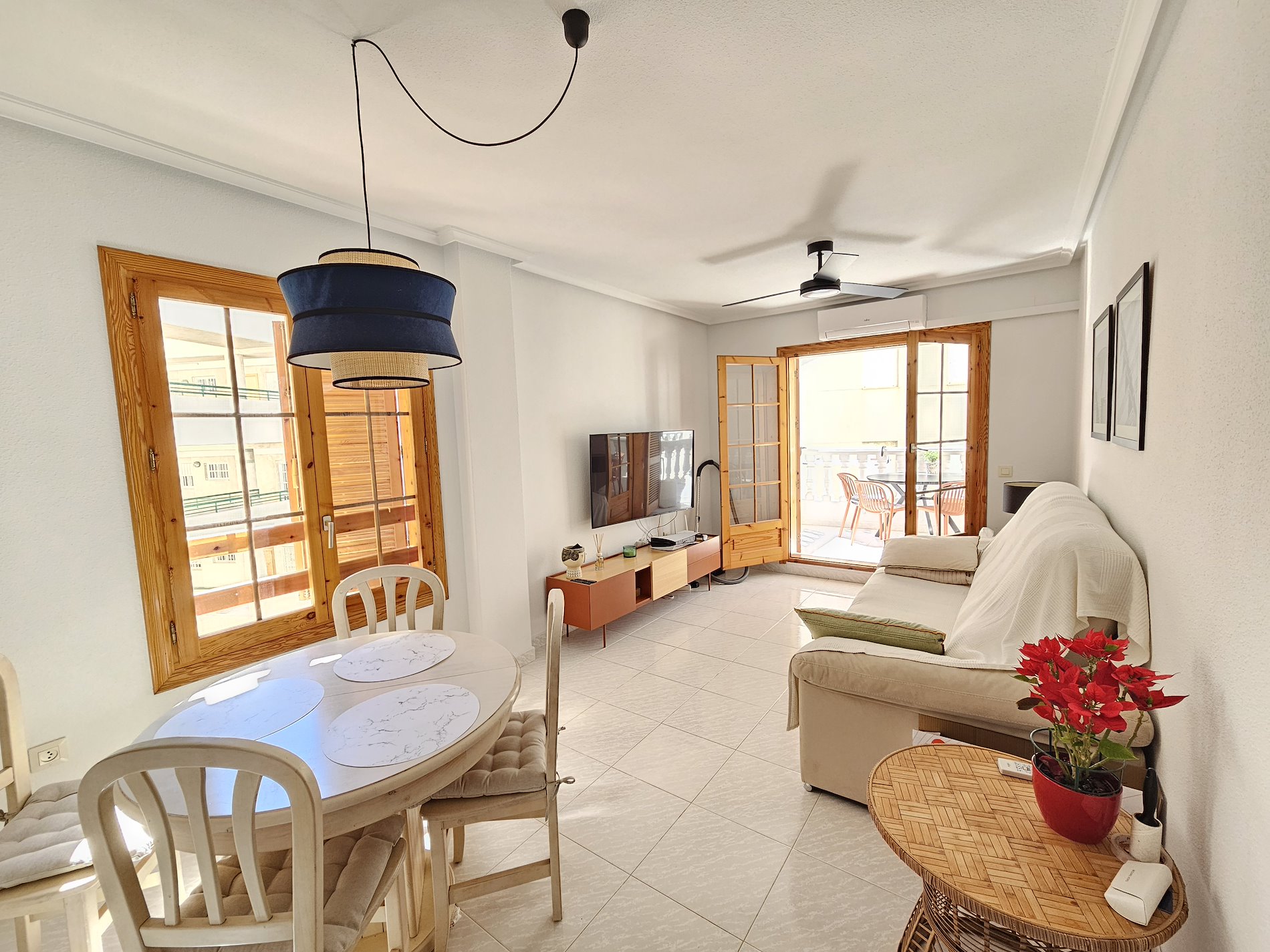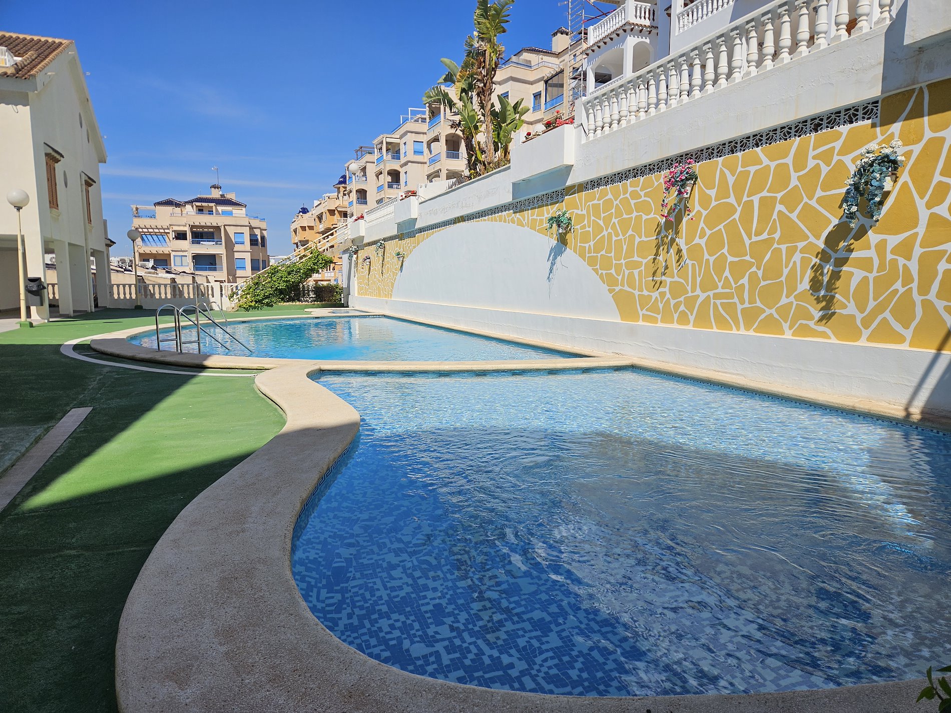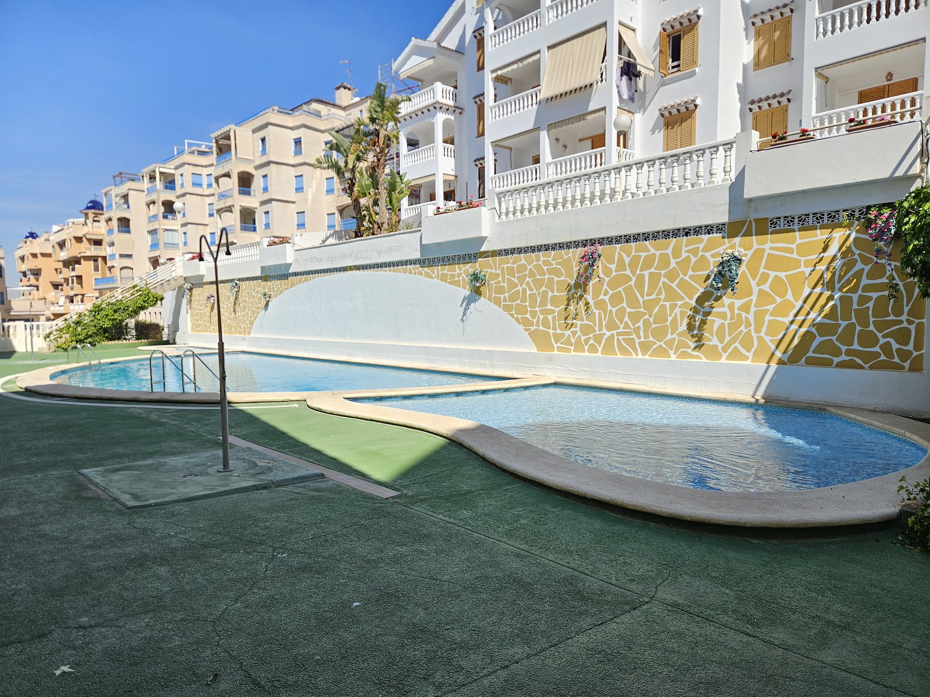 Imagina despertar cada mañana con una vista impresionante al mar, sintiendo la brisa fresca y el sonido de las olas. Este encantador apartamento en Santa Pola, en la exclusiva zona de Varadero, ofrece exactamente eso y mucho más. Este hogar es perfecto para quienes buscan confort y belleza en un mismo lugar. Este piso exterior, construido en 1990, cuenta con tres acogedoras habitaciones, incluyendo una habitación doble. La cocina, completamente amueblada, es perfecta para preparar deliciosas comidas mientras disfrutas de la vista al mar desde su terraza. Imagínate disfrutando de tu café matutino con estas vistas panorámicas. El apartamento también incluye comodidades como aire acondicionado, trastero y garaje. Y para los días de calor, ¿Qué mejor que un refrescante chapuzón en la piscina del complejo? Ubicado a pocos pasos de la Playa Varadero y cerca del campo de golf Alenda y del punto deportivo Marina Miramar, este piso ofrece una combinación perfecta de relajación y actividades recreativas. ¿Estás listo para hacer de este tu nuevo hogar? ¡No dejes pasar esta oportunidad única!